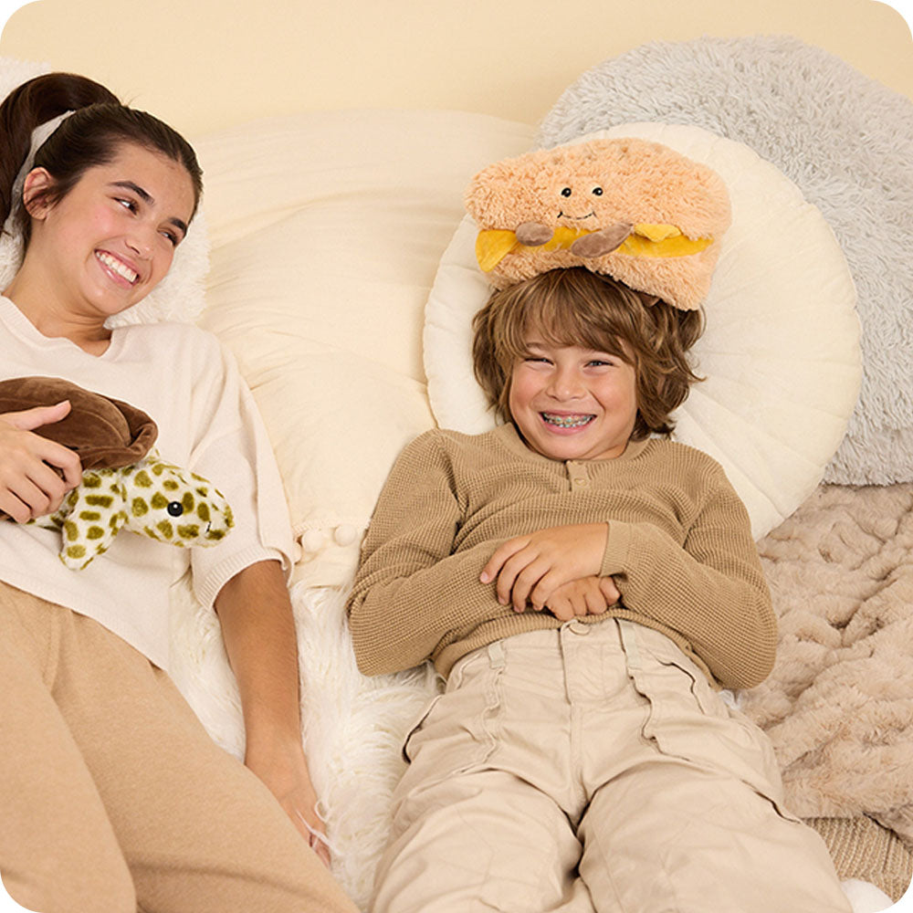 The internet’s cheesiest comfort just got cozier! Grilled Cheese Warmies is fully heatable for soothing warmth. gently weighted for relaxation. and lavender-scented for calm.